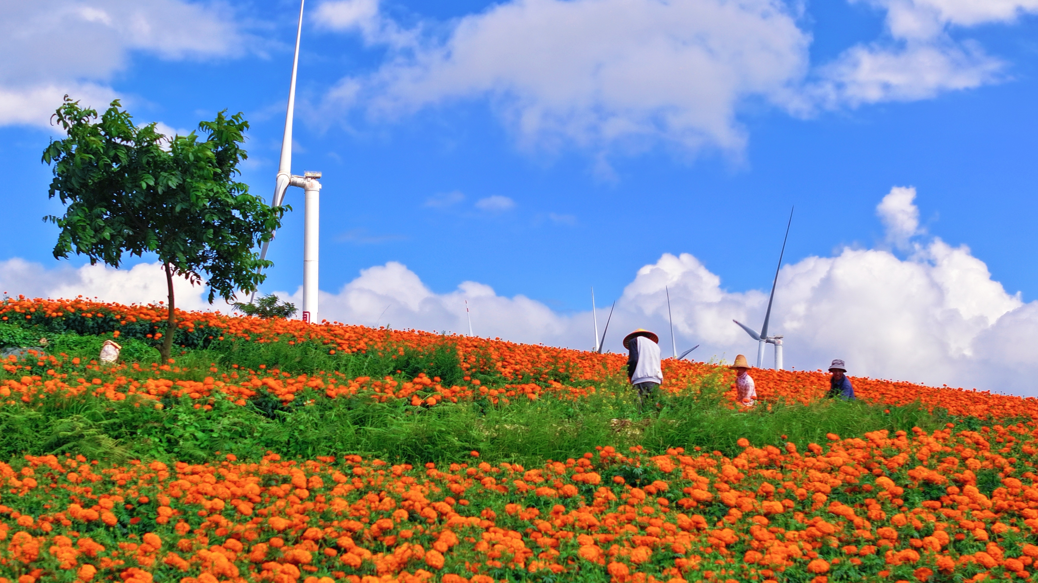 依托高原山地百万千瓦风电基地的壮丽场景,地企携手打造“高原动力参观带”。经过土地整合与规划化栽培,连片打造3600亩万寿菊参观带,构成集动力科普、生态参观、耕耘体会于一体的农旅交融示范区。