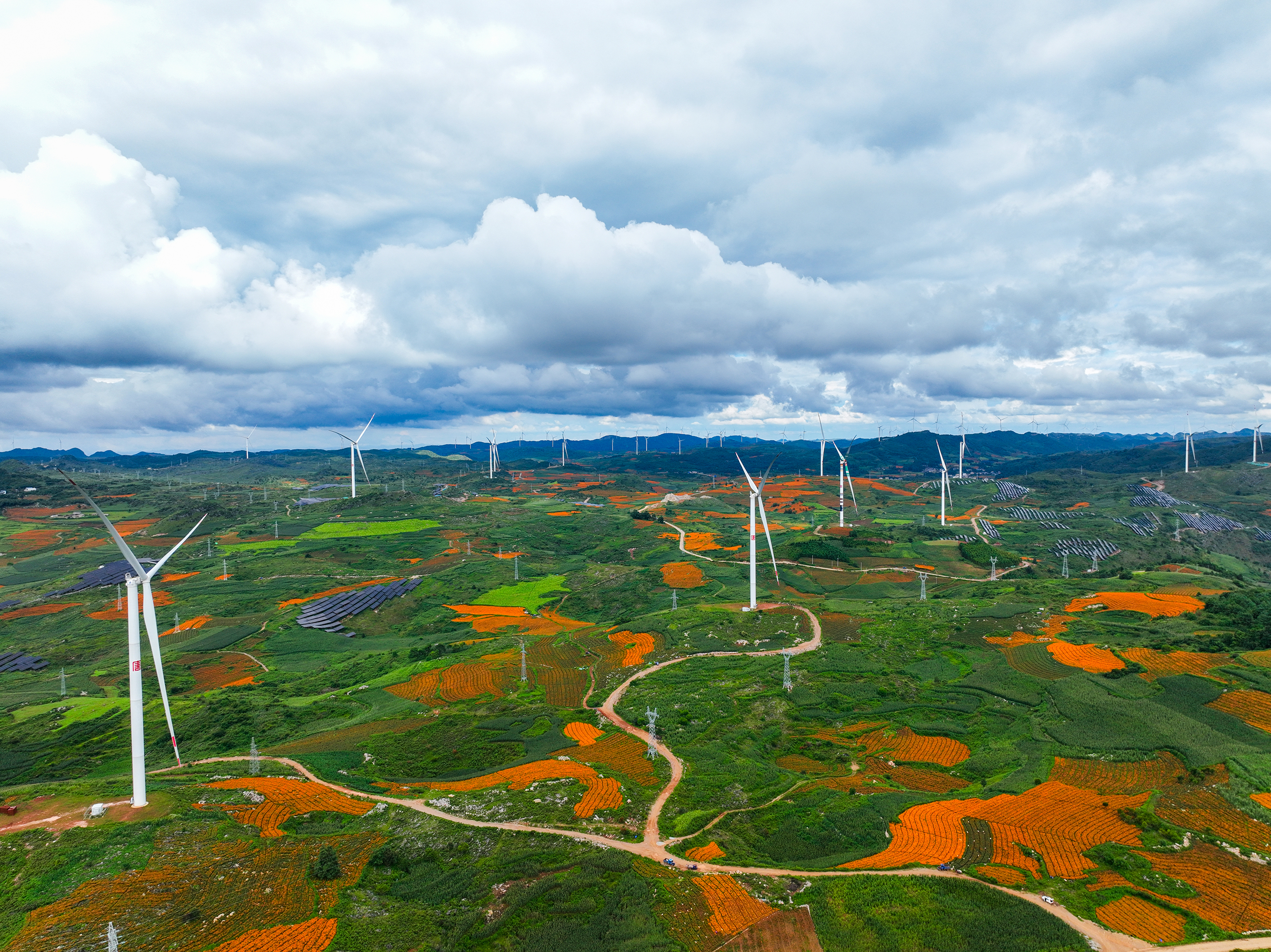 近年来,大唐云南发电有限公司滇东新动力工作部以“风电+光伏+特征农业”交融开展形式,在文山州丘北县构建起一条绿色动力与村庄复兴深度协同的工业链,不只点亮了万家灯火,更照亮了高原大众的致富路。