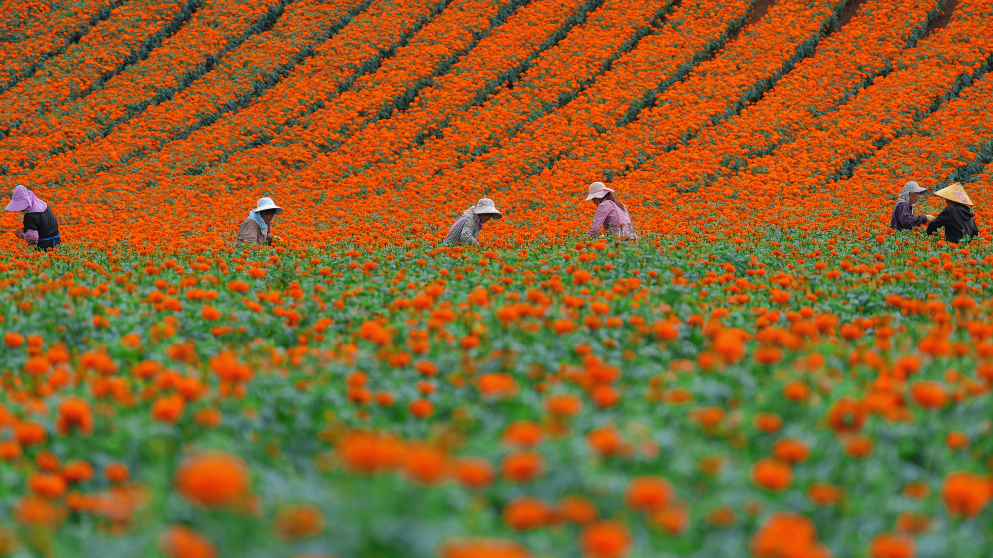 现在,丘北县金色万寿菊栽培工业渐渐的变成了当地经济开展和村庄复兴的要害枢纽。多个方面数据显现,自金色万寿菊栽培工业项目落地以来,丘北县万寿菊栽培规划从2011年的5000亩扩展至现在的75800亩,大众人均增收从4000元提升至18100元,增长率达352%。金黄色的万寿菊渐渐的变成了“致富花”和企地协作的成功模范。